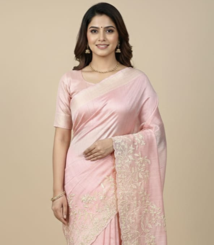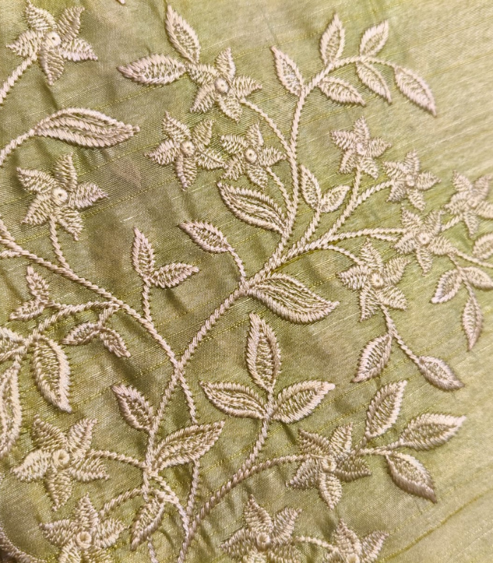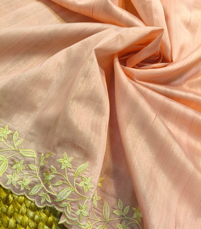 Be the first to review “White thread embroidery work with scalap border Tusser Saree” Cancel reply